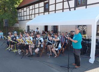 Traditionell traten an diesem Tag die Akkordeonteufel der Musikschule Fröhlich unter der Leitung von Andrea Häcker mit ihrem neuen Programm bei uns auf. Der Renner war die Zugabe "Cordula Grün"! Unser Ehrenmitglied Jörg Wicke führte als wandelndes Ortslexikon eine Gruppe Wissbegieriger durch Zuckelhausen.
