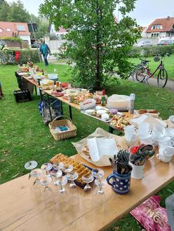 Am 27.08.2023 fanden sich trotz gemischten Wetters die Vereinsmitglieder und viele Gäste am Zuckelhausener Teich zum Frühstück ein. Dieses Jahr waren darunter einige neue Gesichter! Die Tafel war voll mit tollen Leckereien und kunstvollen Kreationen. Ein nettes Gespräch mit seinen Tischnachbarn - eine schöne Tradition, initiiert von Vereinsmitgliedern - bereitet einfach Freude und sollte wiederholt werden!
