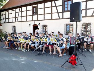 Am Vormittag verwöhnten uns die Akkordeonteufel unter der Leitung von Frau Andrea Häcker. Mit bekannten Melodien, es ging gleich rockig los mit „We will Rock you“ und das Publikum rockte mit. Mit „Pompeii“ ging es weiter, passend zum Wetter folgte „Following the sun“, es folgte ein Hit nach dem anderen, z. B. „Joana“, „Dich zu lieben“ und und ... Die Akkordeonteufel kamen nicht umhin 2 Zugaben draufzulegen. Das Publikum dankte es mit Beifall.