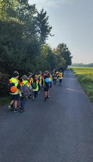 Außerdem machten die Kinder u.a. halt am Zuckelhausener Teich und auf dem örtlichen Spielplatz. Dort konnten die Kinder sich austoben und gemeinsam spielen. Ein weiteres Highlight des Rundgangs war der Besuch bei einer Familie, die Hühner hält. Die Kinder durften die Tiere nicht nur aus nächster Nähe beobachten, sondern erhielten sogar ein eigenes Ei.