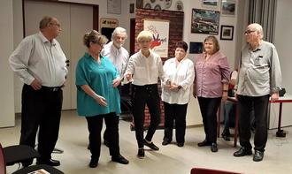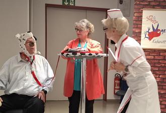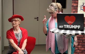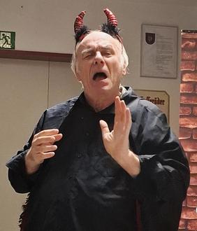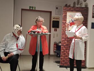 Die Spottvögel brachten auf ihre wunderbare Art und Weise kleine Alltagsgeschichten und -probleme auf die Bretter, die die Welt bedeuten bzw den Fußboden der Feuerwehr. Sei es das Problem eines Amtsmitarbeiters, der nur einen neuen Kugelschreiber benötigt und dann begann seine Tortour mit dem Ausfüllen diverser Bestellformulare...Eine Politesse, wie immer dienstbeflissen, erzählte auch von ihrem Alltag...Mephisto - "ein Teil von jener Kraft, die stets das Böse will und stets das Gute schafft" verzauberte das Publikum. Eine witzige Anekdote nach der anderen erfreute das Publikum. Die Spottvögel mit ihren charmanten Darbietungen und passender Kostümwahl zogen die Besucher in ihren Bann. Alles musikalisch untermalt vom Mann am Klavier.