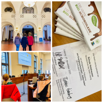 Am 7. November durften drei Schülerinnen bei der Auszeichnungsveranstaltung des Energiesparprogrammes "Halbe-Halbe" die Schule Holzhausen vertreten. Ganz aufgeregt nahmen die Schülerinnen die Auszeichnung im großen Ratssaal des Neuen Rathauses entgegen. Stolz können wir berichten, dass wir im Bereich Wärme und Strom deutlich Energie sparen konnten! Wir freuen uns auf ein weiteres Energiesparjahr. Mitte November geht das Projekt in der 2. Klasse weiter. Weitere Informationen zum Projekt gibt es hier: www.halbe-halbe.leipzig.de.