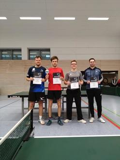 Bei den Herren lief es für zwei der TTCler besser und so standen sich in einem vereinsinternen Halbfinale Luka Künast und Georg Gütschow gegenüber. Georg setze sich in 4 Sätzen durch, im Finale gegen den ehemaligen TTCler Robert Mayan musste er sich dann in 4 Sätzen geschlagen geben.
