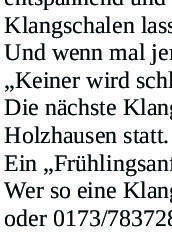 Die nächste Klangreise unter dem Motto „Weißer Wintertraum“ findet am 08.02.24 im Berggut Holzhausen statt. Für 19 und 20.15 Uhr sind noch ein paar freie Plätze vorhanden.
