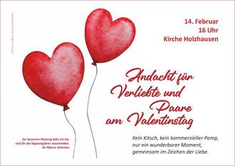 | 16 Uhr | Segnungsfeier für Verliebte und Paare in der Kirche Holzhausen |
