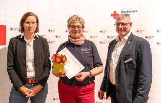 Für ihr 40 Jahre andauerndes ehrenamtliches Engagement im Roten Kreuz erhielt unsere Kameradin Ines Meister zur Mitgliederversammlung des DRK Kreisverbandes Leipzig-Land die goldene Auszeichnungsspange des DRK sowie die Ehrennadel des Landesverbandes Sachsen verliehen.