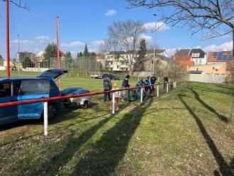 Der nasse Herbst und Winter hat den Sportplätzen im Emil-Altner-Weg und in der Arthur-Polenz-Straße sehr zugesetzt. So fiel in den letzten Monaten bereits das ein oder andere Training wegen Nichtbespielbarkeit der Rasenplätze aus. Damit der Start in die wärmere Jahreszeit gelingt, mussten die Plätze und Flächen herum in Schuss gebracht werden. Viele fleißige Hände befreiten am 9. März Wege von Unkraut, schnitten Hecken, sammelten Müll, linierten die Sportplätze neu, fegten Laub, reparierten die Fangnetze und entsorgten alte Tore. Drei Autos mit Hänger fuhren ständig zum Wertstoffhof und entsorgten die Grünabfälle.