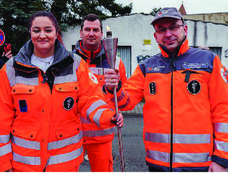 Gemeinsam mit den Freunden von der Feuerwehr Holzhausen begrüßten die ehrenamtlichen Kameradinnen und Kameraden der Bereitschaft Mölkau-Holzhausen die Fackel mit einem Blaulicht-Spalier. Von ihnen wurde das „Licht der Hoffnung und Menschlichkeit“ weitergereicht in die Verpflegungsgruppe des Ortsvereins, die zum Gruß einen köstlichen Imbiss für die vielen Gäste vorbereitet hatte. Bestens gestärkt wurde die Fackel in den Bereich Aus- und Fortbildung übergeben, denn im Ortsverein fand an diesem Tag eine Ausbildungseinheit des Sanitätsdienstes statt.