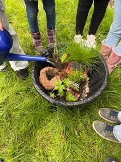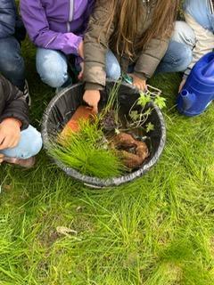 Passend zum aktuellen Lehrplan-Thema „Gewässer“ im Sachunterricht baute die Klasse 4b einen eigenen Klassenteich.