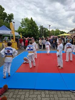 Die Akkordeonteufel der Musikschule Fröhlich stimmten uns musikalisch ein. Als erstes präsentierte sich der Judoverein mit einer schwungvollen Darbietung ihrer Würfe auf der Tatami. Gefolgt vom Fußballverein, der sich mit Toreschießen und einem Fußballquiz vorstellte.
