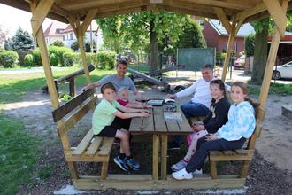Am 11.05.2023 war es so weit: die vom Förderverein der Grundschule Holzhausen gespendete Sitzgruppe wurde offiziell von der Stadt Leipzig abgenommen und an die Grundschule und den Hort übergeben. Somit hat das Außengelände der Einrichtung weiter an Attraktivität gewonnen. Hier können die Kinder im Sommer unter dem schattigen Dach sitzen und malen, Karten tauschen oder einfach nur abhängen. Wir möchten uns auf diesem Weg ganz herzlich beim Förderverein der Grundschule Holzhausen e.V. für die gute Zusammenarbeit und das Engagement bedanken.