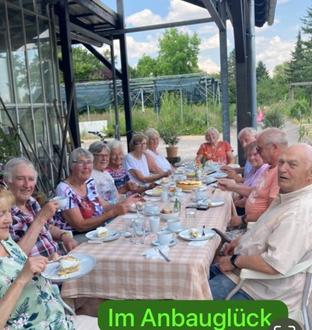Der Juli begann ja nicht nur mit schönem Sommerwetter. So freuten sich die Senioren besonders über den herrlichen Sommertag, der für den Nachmittag im „Anbauglück“ geplant war. Alle trafen sich diesmal in der Parkstraße. Die schön eingedeckte Kaffeetafel lud herzlich zum Verweilen ein. Mit ganz besonders gutem Kuchen, gutem Kaffee, aber auch mit frisch hergestellten Limonaden wurden alle verwöhnt. Das Besondere neben all diesen gute Sachen waren dann interessante Anregungen zum Thema „Gesunde Ernährung“. Die Inhaberin vom Anbauglück, Cornelia Hilbert, erklärte und beantwortete Fragen zu diesem Thema. Anschließend konnten glückliche Hühner, gesundes Gemüse und selbst die Backstube bewundert werden. Es war ein Nachmittag, der für alle interessant und kurzweilig war. Der zweite Donnerstag im Juli meinte es mit dem Wetter nicht so gut. Zum geplanten Grillnachmittag musste etwas improvisiert werden. So hieß es wir rillen draußen, essen und trinken drinnen. Aber auch diese Variante ließ einen schönen gemeinsamen Nachmittag zu. Für den August hoffen wir, dass die Temperaturen noch weitere Zeit im Freien möglich machen.