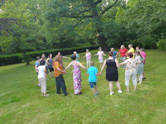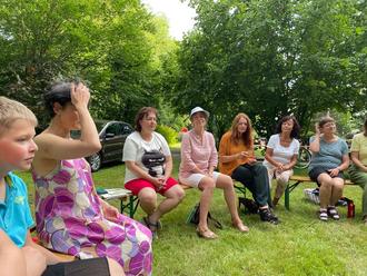 „Wo gesungen wird, da lass dich ruhig nieder …“, unter diesem Motto trafen sich am 26. Juni sangesfreudige Menschen in Täschners Garten. Unter Leitung der Gesangslehrerin Frau Stefanek sangen ca. 20 Frauen und erfreulicherweise 1 Junge bekannte und weniger bekannte Lieder. Manche Lieder - siehe Foto - auch mit viel Bewegung. Das Küchenteam vom Heimatverein sorgte dafür, dass die Kehlen nicht trocken wurden. Leckere Erdbeerbowle und andere alkoholfreie Getränke standen zur Verfügung. Es hat allen großen Spaß gemacht. Sicher wird so ein geselliges Singen noch einmal wiederholt! Zur Vorbereitung trifft man sich immer Mittwoch 19.00 Uhr im Berggut.