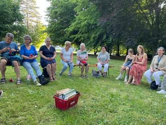 Am 25.6.2025 lud der Heimatverein zum gemeinsamen Singen ein. Es fanden sich doch sangesfreudige Holzhausener ein, um unter der fachkundigen Anleitung der Gesangslehrerin Frau Stefanek ihrer Sangeslust zu frönen. Aus dem von ihr mitgebrachten Liederbuch, das ein Fundus an bekannten Liedern war, wurden viele Weisen gesungen. Mit Gitarrenbegleitung wurde es ein schöner Liederabend unter den Bäumen von Täschners Garten. Nur der Neumond spielte nicht mit, so wie wir es angekündigt hatten- „Neumondnacht in Täschners Garten-einfach mitsingen“. Gesagt, getan bzw. gesungen. 2026 wird es bestimmt einen neuen Anlauf geben und sich vielleicht eine größere Schar an Sangesfreudigen aus Holzhausen und Umgebung zum gemeinsamen Singen einfinden.