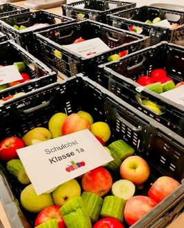 Nach erfolgter Bewerbung beim EU-Schulprogramm für Obst und Gemüse haben wir wieder das große Glück, wöchentlich mit frischem Bio-Obst- und Gemüse beliefert zu werden. Jeden Dienstag erhalten unsere Kinder gemischte Klassenkisten. Die gesunden Snacks werden von allen Kindern immer sehr gut angenommen. Vielen Dank an unseren neuen Lieferanten Bio´s Fähre.