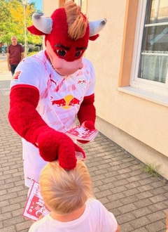 Heute besuchte uns das Team von Bullis Bande und überreichte uns ein Schul-Start-Paket. Dabei hatten alle Kinder die Möglichkeit, ein Autogramm von Bulli persönlich zu ergattern. Ein Dankeschön an RB Leipzig für diese Überraschung!