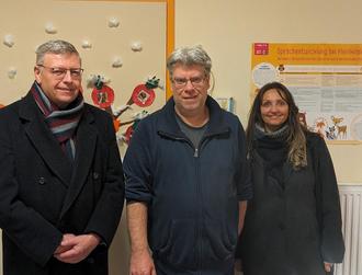 Zu Beginn seiner Amtszeit war es Gemeindebürgermeister Andreas Burger ein Anliegen, sich in allen Kindertagesstätten der Gemeinde ein Bild zu machen und mit dem Personal ins Gespräch zu kommen. Dabei war es egal, ob die Einrichtungen kommunal oder durch andere Träger betrieben werden. Kurz vor Jahresende war demnach die Integrative Kindertagesstätte „Kleeblatt“ in Wellen die letzte Station, die er besuchte. Betreiber ist hier die Lebenshilfe Ostfalen gGmbH. Gemeinsam mit Rathausmitarbeiterin Ilka Meinke tauschte sich Andreas Burger vor Ort mit Einrichtungsleiter Michael Herzog (Mitte) aus.