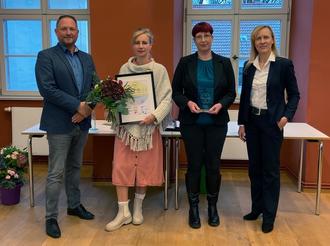 Als Vertreterinnen der Gemeinde Hohe Börde nahmen Anja Gawert vom Personalrat (2. von links) und Ines Bormann vom Personalamt (2. von rechts) die Auszeichnung von Marco Gravert und Friederike Hecht entgegen. Foto: Landkreis Börde