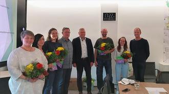 Der neue Vorstand des Gemeindeelternbeirats (Von links) Carolin Meyer (Vorsitzende), Sarah Reinke (stellv. Vorsitzende), Kathrin Molz (Schriftführerin), Jürgen Kebernik (Trägervertreter Gemeinderat), Andreas Burger (Gemeindebürgermeister), Torsten Kahle (Kreiselternvertreter), Janine Jordan (stellv. Kreiselternvertreterin) und Florian Pötzsch (stellv. Trägervertreter Gemeinderat).