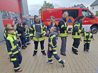 Auch der Feuerwehrnachwuchs unterstützte den „Tag der offenen Tür“ mit seinen Vorführungen. Unter anderem ernteten die Kinder für ihre unterhaltsame Eimerketten-Löschübung viel Applaus. Einige Mitglieder der Kinderfeuerwehr wurden ausgezeichnet, weil sie die „Kinderflamme 3“ erfolgreich absolviert hatten, weitere wechselten von der Kinderfeuerwehr in die Jugendfeuerwehr.