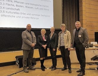 Mit der Vizepräsidentin des Bundesnetzagentur Barbie Kornelia Haller (Bildmitte) tauschten sich Bauamtsleiter Rüdiger Schmidt, Gemeindebürgermeisterin Steffi Trittel, Hohenwarslebens Ortsbürgermeisterin Hilke Neuschrank und Groß Santerslebens Ortsbürgermeister Andreas Burger (von links nach rechts) während der Antragskonferenz in Salzwedel aus.