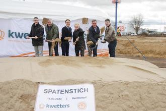 Mit dem ersten Spatenstich hat die Kwetters Deutschland Immobilien GmbH den symbolischen Startschuss für den Bau einer hochmodernen Eier-Pack-Anlage in Hermsdorf vollzogen. Das Unternehmen errichtet im Auftrag der Kwetters Logistik GmbH auf einer 17 Hektar großen Fläche eine moderne Industrieanlage mit einer überbauten Grundstücksfläche von 13.700 Quadratmetern.
