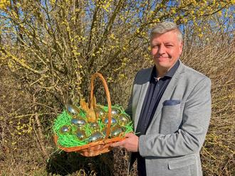 Bürgermeister andreas Burger versteckt die 14 goldenen Ostereier in den Ortschaften der Hohen Börde persönlich. Die Finder erhalten einen Überraschungspreis.