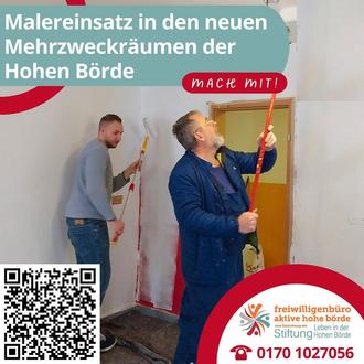 In das leer stehende Hortgebäude an der Kirchstraße kehrt nach dem Umzug der Kinder in den modernen Hort allmählich das Leben zurück. Im Erdgeschoss renovieren die ehrenamtliche Mitstreiter des Repair- und des Nähcafés (siehe Infokasten) die neuen Räumlichkeiten. In der oberen Etage wird das Freiwilligenbüro seine Servicestelle einrichten. Zusätzlich entstehen im Obergeschoss in Regie des Freiwilligenbüros zwei Mehrzweckräume, die künftig von gemeinnützigen Initiativen und Vereinen aus der Hohen Börde für Workshops, Stammtische, Bewegungsangebote, Theaterproben und vieles mehr genutzt werden können. Auch dort laufen die Vorbereitungen für die Renovierung. Die erste Aktion des Freiwilligenbüros in der oberen Etage ist am 1. März über die Bühne gegangen. Damit diese Räume bald mit Leben gefüllt werden können, werden Freiwillige gesucht, die Lust haben mit anzupacken (siehe Aufruf). Interessierte Mitstreiter können sich unter info@aktivehoheboerde.de melden.
