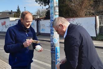 Florian Pötzsch und Bürgermeister Andreas Burger gingen für einen Fernsehbeitrag schon mit gutem Beispiel voran.