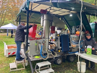 Im Mittelpunkt des bunten Treibens wird erneut die mobile Mostpresse klappern. Um einen reibungslosen Ablauf zu ermöglichen, müssen Anmeldungen für das Pressen von Kernfrüchten (ausschließlich Äpfel und Birnen) vor dem Fest erfolgen. Unter der Telefonnummer 0179/4573405 können mit Herrn Matthias Konschak Uhrzeiten vereinbart werden. Die Erfahrungen der vergangenen Jahre haben allerdings gezeigt, dass die vereinbarten Termine trotz Anmeldung nur Richtwerte sind und es zu Wartezeiten kommen kann. Nicht zuletzt deshalb wird auch darum gebeten, die vorher angemeldete Obstmenge weitestgehend einzuhalten. Der Preis pro gepresstem Liter Saft beträgt 1,20 Euro in der praktischen 5-Liter Box und bleibt damit unverändert zum Vorjahr.