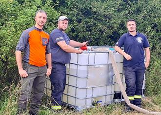 Eric Berger, Lars Meyer und Marvin Schmidt (von links) befüllten gemeinsam mit Marcel Hartmann (nicht im Bild) die Wassertanks für die Hermsdorfer Streuobstwiese.