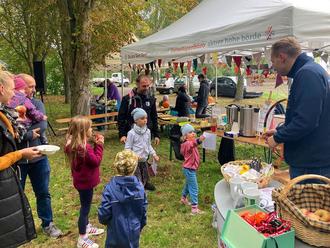 Kürbisschnitzen und Kartoffeldruck, Futterhäuschen zimmern und Kinderschminken: Zwischen Glücksrad, Hüpfburg und Wissens-Quiz war die Palette für die jungen Gästen bunt wie der Herbst. Die großen Besucher mischten mit ihren Schützlingen mit oder informierten sich bei heimischen Imkern und Bierbrauern über naturnahe Köstlichkeiten. Die Groß Santersleber Pilzfarm verbreitete duftende Schwaden, die Landfrauen lockten zu sächsischen Quarkkeulchen, Kaffee und Kuchen dampfte am Infostand des Freiwilligenbüros (FWB).