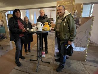 Die Ausstellung hat aber auch Interesse über die Grenzen der Hohen Börde geweckt. So kam Heiner Danzmann von der Kirchengemeinde Bornstedt mit Gästen aus der Kirchengemeinde Dolle ins Gespräch. Auch sie befürworten weitere Nutzungen für ihre Kirche und wollten anhand der Praxisbeispiele aus Thüringen Anregungen finden.