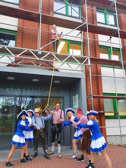 Einen Tag vor dem offiziellen Beginn der fünften Jahreszeit haben die Faschingsfreunde des Niederndodeleber Karnevalsvereins TTCC das Rathaus der Hohen Börde geentert. Trotz Fluchtversuchs von Gemeindebürgermeisterin Steffi Trittel über das Baugerüst konnten die Zwerge und Tanzmariechen aus dem „Karnewald“ der Rathaus-Chefin den goldenen Rathausschlüssel abluchsen. Den Schlüssel verwahren die Niederndodeleber Närrinnen und Narren nun bis zum Ende der Faschingszeit. Seine Karnevalssitzungen veranstaltet der TTCC am 16. und 17. Februar 2024 im Saal „La Familia“. Das Motto bleibt noch geheim. Über den Beginn des Kartenvorverkaufs informiert der Karnevalsverein rechtzeitig.