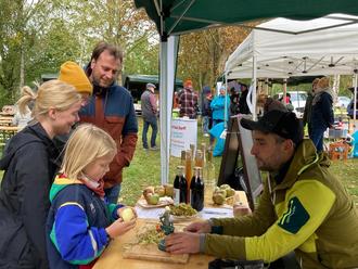 Weniger frisch gepresster Apfelsaft als in den Vorjahren, dafür umso mehr Angebote und gute Laune prägten das herbstliche Treiben auf der bunten Festmeile am Bornstedter Dorfrand. Der Frost im Frühjahr hatte dem Erntesegen zwar einen Strich durch die Apfelsaft-Rechnung gemacht. Dennoch genossen die Veranstalter mit ihren Besuchern die Angebote unter der Herbstsonne. Kürbisschnitzen neben Kuchen und Kürbissuppe, dazu ein buntes Glücksrad, Kinderquiz und Kinderschminken, Bastelangebote der Bornstedter Sportdamen - so bunt wie der Herbst - ließen kaum Kinderwünsche offen. Dazu gab es jede Menge Informationen am Stand des Freiwilligenbüros und bei Eric Berger vom Streuobstwiesenprojekt im Hermsdorfer Naschgarten. Zu guten Gesprächen luden auch Imker Matthias Fricke, Matthias Konschak von der mobilen Obstmosterei und die Hohenwarsleber Kleingärtner ein. Dazu gesellten sich das Repaircafé Hohe Börde und Landfrau Anne Gendera an der Drehorgel. Dicht umringt wie eh und je war der Tischlerstand von Werner Meyer, der dieses Mal mit den Kindern Nistkästen zimmerte. Dazu tanzten die Mädels von Grün-Rot Bornstedt einen bunten Reigen und die Bornstedter Kita-Knirpse amüsierten am Anger mit Gedichten und Geschichten. Für das leibliche Wohl sorgten in gewohnter Manier Ortsbürgermeister Sven Nachtigall und die örtlichen Hundesportler. Sie hatten auch vom frühen Morgen bis in die Abendstunden für eine reibungslose Versorgung der Anbieter mit Strom und Wasser gesorgt.