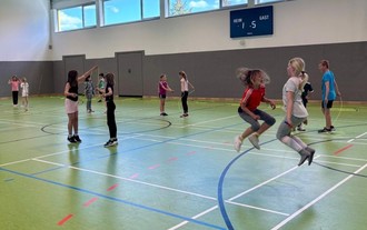 So sprangen sich die Schüler der Klasse 3a fit. Nach einer Probe- und Trainingszeit haben die Kinder mit vollem Erfolg eine kleine Aufführung auf die Beine gestellt, welche sie dann vor anderen Schülern der Grundschule stolz präsentierten. Nur durch das Zuschauen wurde auch ihr Interesse geweckt. Im kommenden Schuljahr wird das Projekt erneut stattfinden.