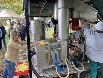 Die Mostpresse verarbeitet das eigene Obst zu frischem Saft.