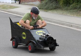 Jüngster Teilnehmer war mit 2,5 Jahren Mika Schick als „Froschinator“, ältester Teilnehmer war Thomas Brickzinsky, der als „Alter Sack“ startete und die Zuschauer bestens unterhielt. Wenn’s einen Preis für gute Laune gegeben hätte, wäre er ganz vorn dabei gewesen. Viel Spaß machte auch „Team Krombacher“ (Steven Gehre/Dusty Prellberg), das den Zuschauern in der Kurve mit einem (natürlich alkoholfreien) Bier zuprostete.