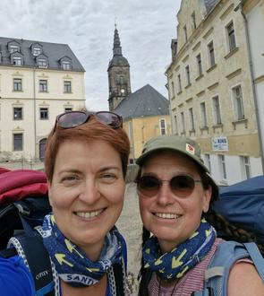 Anja Roocke ist meistens im Laufschritt unterwegs. Denn neben ihrem Job hat sie zahlreiche andere Projekte gleichzeitig am Start. Und da ihr Kopf keine Ruhe gibt, kommen auch immer wieder neue Ideen und Pläne dazu. „Ich brauche das, aber es kostet natürlich auch Energie“, gibt die 50-Jährige zu. Und genau dieser Umstand hat sie im vergangenen Jahr zum Pilgern gebracht. „Meine Freundin Kerstin hat mich gefragt, ob sie einen Vortrag über den Jakobsweg in meiner Kulturinsel halten darf. Ich fühlte mich zu der Zeit etwas ausgelaugt und sagte spontan: Pilgern, das würde mir auch mal gut tun. Einfach wieder zu mir selbst finden und Kraft tanken. Denn das bleibt im ganzen Trubel oft auf der Strecke.“ Wenige Wochen später steckte Anja Roocke in ihren Wanderschuhen und war bereit. „Kerstin und ich hatten zuvor überlegt, ob wir uns tatsächlich gemeinsam auf den Weg machen sollten. Denn Pilgern ist etwas Individuelles. Jeder hat sein Tempo, seine Balance, seinen Rhythmus. Will ich schweigen oder lieber reden? Noch etwas weiter laufen oder pausieren? Alles muss passen. Bei uns hat es gepasst“, sagt sie. Und so ging es zusammen los. Doch wer jetzt gleich an Santiago de Compostela, dem Ziel aller Pilgerwege, denkt, hat weit gefehlt. Anja Roocke: „Der Jakobsweg beginnt für jeden Pilger vor der eigenen Haustüre mit dem Entschluss und dem ersten Schritt. Das Witzige ist, dass der Jakobsweg tatsächlich fast vor meiner Haustüre in Kirchberg entlang führt. Unser Startpunkt im vergangenen Jahr war aber dann Kadaň in der Tschechei. Von dort aus waren wir auf dem sogenannten ErzCamino bis Bad Schlema unterwegs. In diesem Jahr sind wir in Bad Schlema wieder eingestiegen und den Jakobsweg ‚Silberberg‘ über Kirchberg bis Hof gepilgert.“