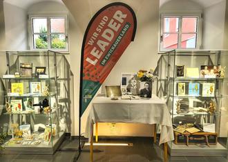 In zwei Vitrinen können sie nicht nur historische und fremdsprachige Ausgaben der Häschenschule bewundern, sondern auch das Originalmanuskript aus dem Jahr 1922, das der Autor in Kirchberg schrieb. Weiterhin sind Fotos mit Albert Sixtus und seiner Familie zu sehen. Mittels QR-Codes gibt es weiterführende Informationen zu seinem Leben und Tondokumente.