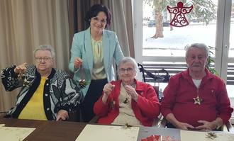Traditionell hat sich Bürgermeisterin Dorothee Anfang Dezember wieder mit Senioren im Pflegeheim Am Borberg getroffen, um Weihnachtsschmuck zu basteln. Entstanden sind hübsche Sterne und Zapfen für den Weihnachtsbaum. „Es ist eine schöne Gelegenheit, um in entspannter Atmosphäre ins Gespräch zu kommen“, sagte die Stadtchefin. Das Treffen musste in den vergangenen Jahren wegen Corona ausfallen. Umso mehr freuten sich alle, dass es in diesem Jahr wieder stattfinden konnte.