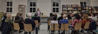 Etwa 25 Besucher haben am 14. November der Lesung mit Kathrin Aehnlich in der Bibliothek im Meisterhaus gelauscht. Die Leipziger Autorin stellte ihr neues Buch "Der König von Lindewitz" vor. Darin erzählt sie von verschiedenen Schicksalen der Einwohner eines kleines Stadtteils einer sächsischen Großstadt. In vielen kleinen Details finden sich Erinnerungen an Dinge wieder, die jeder, der in der DDR groß geworden ist, kennt. Unterstützt wurde die Lesung durch das Projekt „Literaturforum Bibliothek“, bei dem Autoren aus Sachsen in Bibliotheken des Bundeslandes ihre Neuerscheinungen präsentieren. Organisiert wird dies vom Landesverband Sachsen im Deutschen Bibliotheksverband e.V. mit dem Sächsischen Literaturrat e.V. unter finanzieller Unterstützung des Sächsischen Staatsministeriums für Wissenschaft und Kunst.