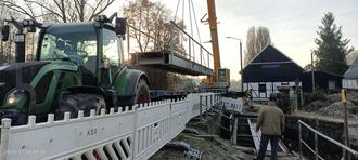 Anfang Dezember hat die beauftragte Firma Eberhard Morgner & Sohn Hoch-, Tief- und Brückenbau GmbH die vorgefertigten Behelfsbrücke eingesetzt. Zuvor wurden der bestehende Brückenbelag sowie das Geländer zurückgebaut und die Schutzrohre mit Versorgungsleitungen gesichert. Die Gesamkosten belaufen sich auf insgesamt etwa 32.000 Euro.