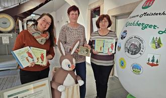 Gleich daneben im Meisterhaus wird es im Textil- und Heimatmuseum eine Sonderausstellung mit Seidenweberei sowie ein kleine Ausstellung über Albert Sixtus geben - dem Autor des Buches "Die Häschenschule", das er während seiner Lehrertätigkeit in Kirchberg geschrieben hatte. Das Textil- und Heimatmuseum ist am Ostersamstag von 10.00 bis 18.00 Uhr geöffnet. Und während die Großen durch das Museum schlendern, sind alle Kinder herzlich in die Bibliothek eingeladen. Dort nämlich wird es 11.00 Uhr, 12.00 Uhr und 13.00 Uhr Lesungen mit dem Osterhasen persönlich geben. Zudem stellen die Modellbahner eine Gartenbahnanlage im Mehrzweckraum zur Schau.