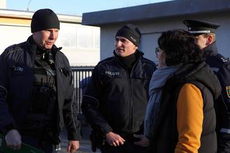 Bürgermeisterin Dorothee Obst im Gespräch mit den beiden Kirchberger Bürgerpolizisten Michael Günther (links) und Marcel Müller.d