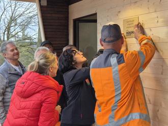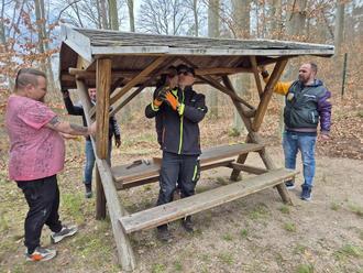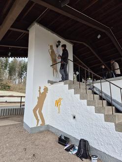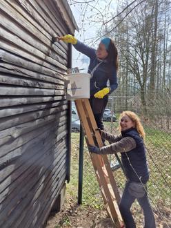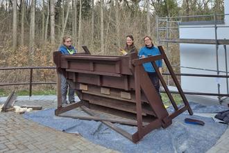 Mit viel guter Laune am Werk: Die Treppe wurde repariert und erhielt einen neuen Anstrich.