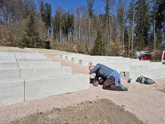 Die neuen Sitzsteine wurden innerhaln von drei Tagen gesetzt,