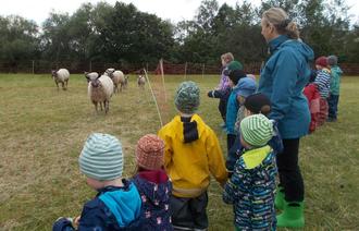 Anschließend durften die Kinder am Teich die Fische füttern und lernten die Schafe mit ihren Namen kennen.