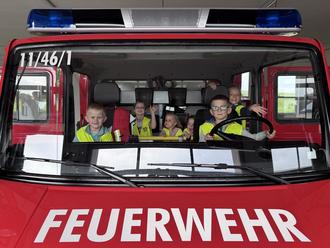 Tatütata Tatütata, die Feuerwehr ist da ...! Wie alle Jahre zum Kindertag, haben uns die Feuerwehrleute aus unserem Dorf auch dieses Jahr wieder zu sich ins Gerätehaus eingeladen. Also haben wir uns bei schönstem Sonnenschein und einem lauen Lüftchen mit dem Bollerwagen aufgemacht, sie zu besuchen. Dort angekommen, warteten sie zum Glück schon mit kühlen Getränken auf uns.