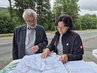 Dass es Handlungsbedarf gibt, wird bei dem Pressegespräch deutlich, zu dem die beiden Bürgermeister anlässlich des 20-jährigen Planungs-Jubiläums Mitte Juli an die Gemarkungsgrenze Cunersdorf – Wilkau-Haßlau eingeladen hatten. „Die Straße ist stark befahren wie man hier deutlich merkt. Zahlreiche Lkw und Autos sind oft sehr zügig unterwegs. Für Radfahrer ist die Strecke durch den Hochwald mitunter richtig gefährlich, vor allem in den Abendstunden. Uns geht es bei dem geforderten Radweg um die Verkehrssicherheit für den Alltagsradverkehr“, erklärt Dorothee Obst. Doch auch touristisch hätte der Weg Bedeutung, würde er doch eine weitere Lücke der Rödelbach-Bürsten-Route schließen.